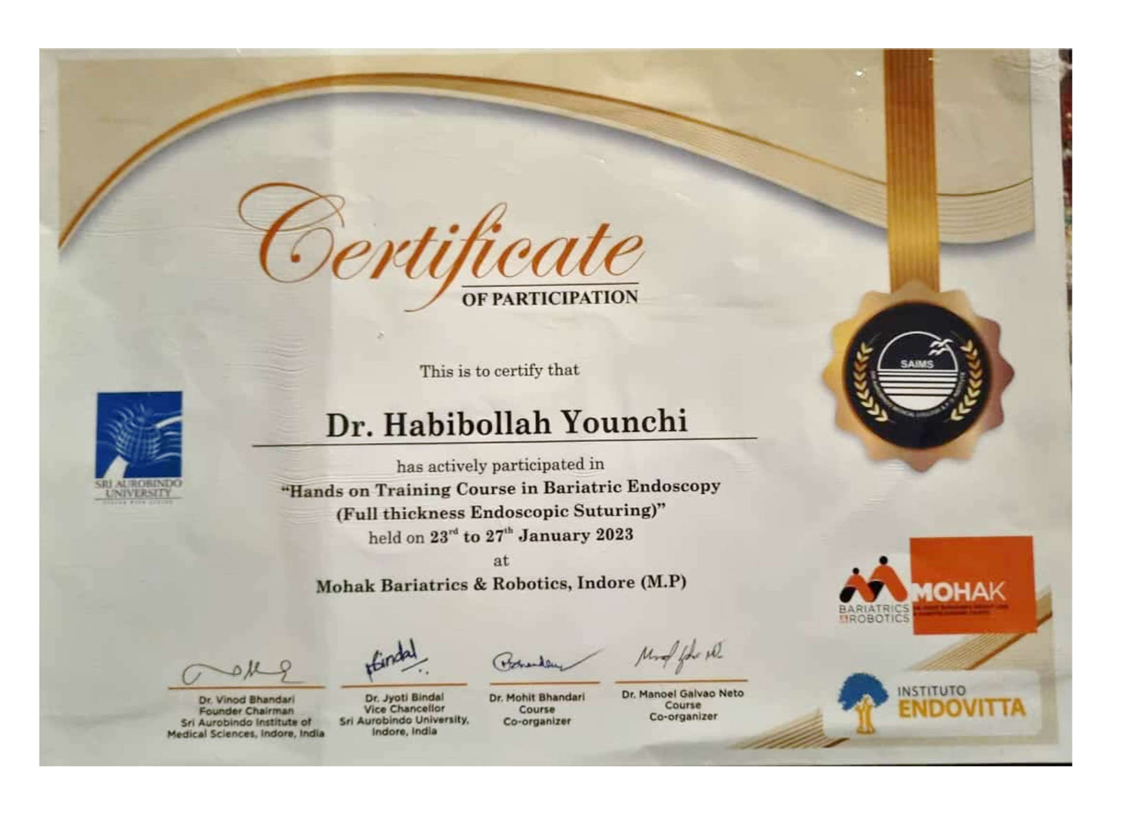 Dr. Younchi has completed rigorous academic and professional training at Qazvin University of Medical Sciences and several international institutes. His educational journey reflects deep commitment to lifelong learning, clinical excellence, and advancement of modern endoscopic technologies through specialized courses in Italy and India.